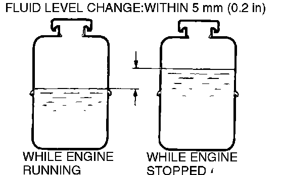 3. Check the fluid in the oil reservoir for foaming or milkiness. Check the difference of the fluid level when the engine is stopped, and while it is running. If the change of the fluid level is 5 mm (0.2 inch) or more, air bleeding should be done.