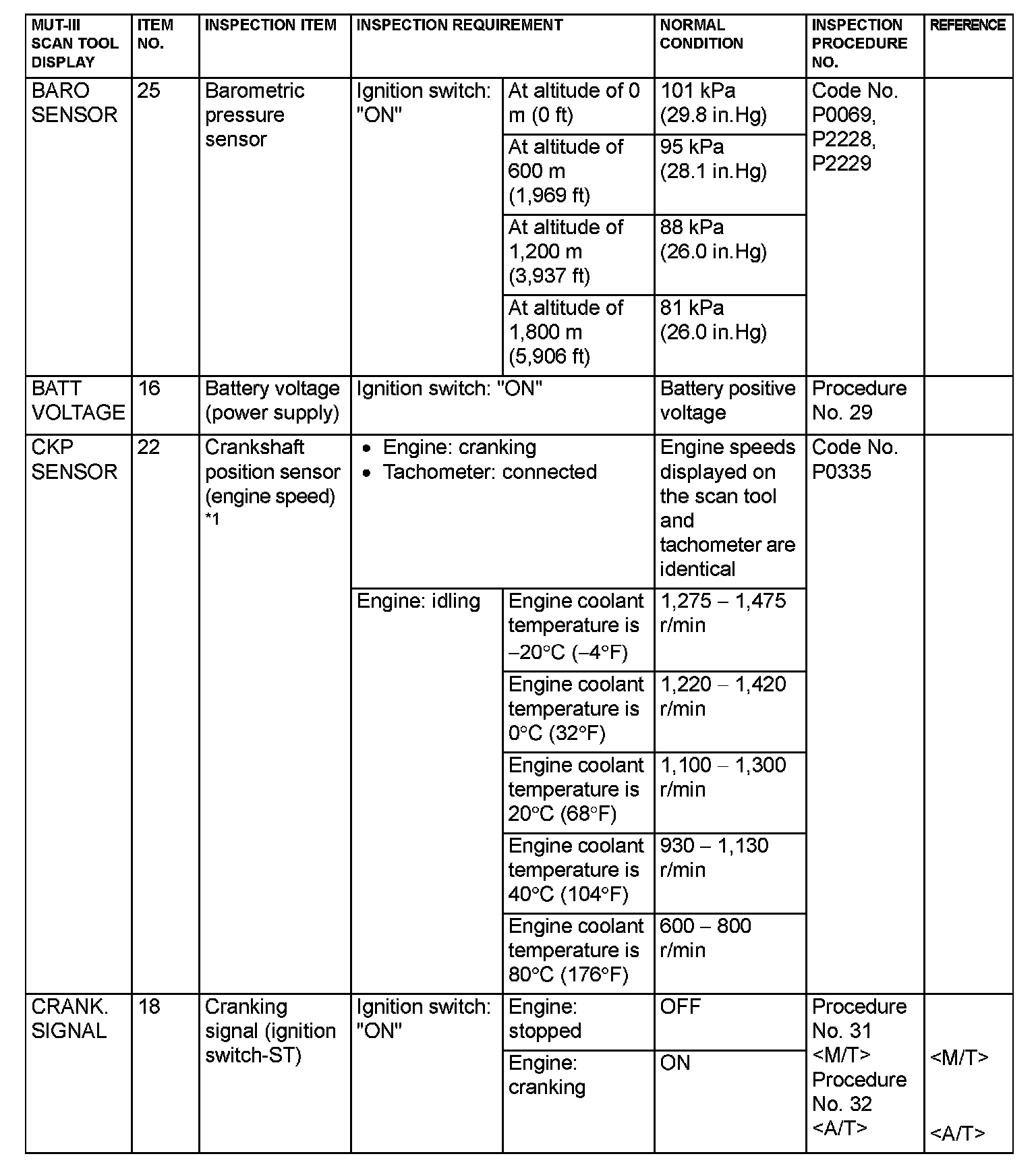 Data List Reference Table & Normal Scan Data Values