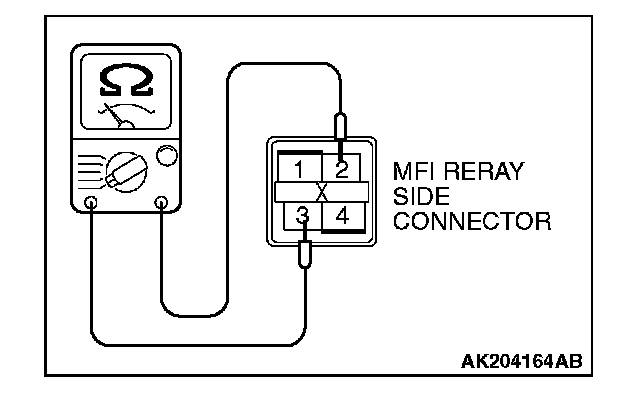 2. Check for continuity between the MFI relay terminals No. 2 and No.3.