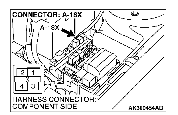 1. Disconnect the connector A-18X and measure at the harness side.
