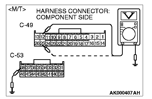 STEP 9. Measure the power supply voltage at ECM harness side connector C-49, C-53