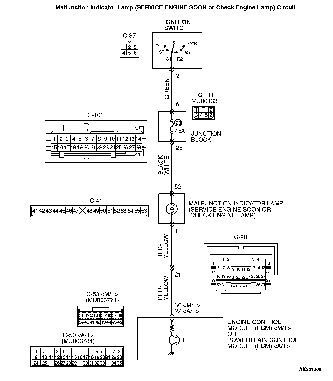 The Malfunction Indicator Lamp (SERVICE ENGINE SOON or Check Engine Lamp) Remains Illuminated and Never Goes Out.Malfunction Indicator Lamp (SERVICE ENGINE SOON Or Check Engine Lamp) Circuit Part 1: