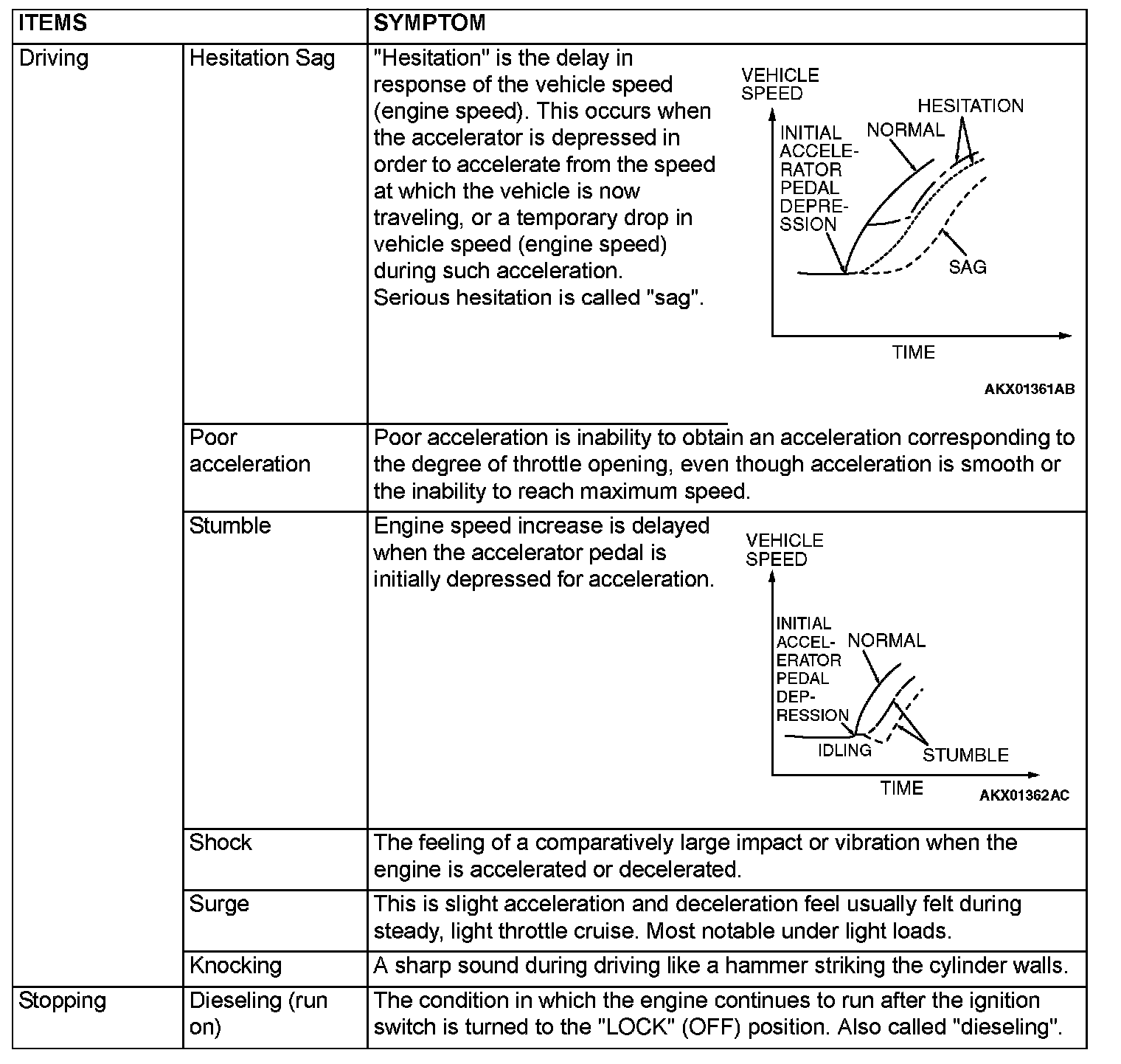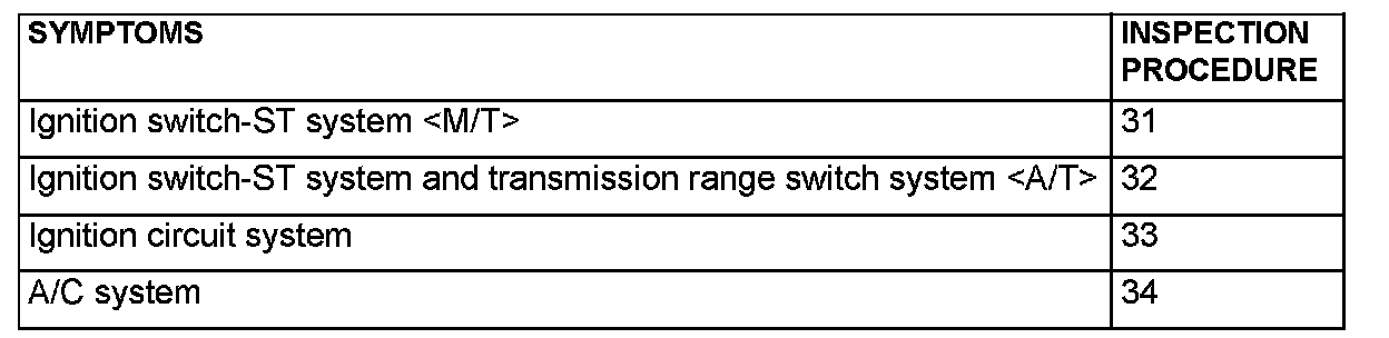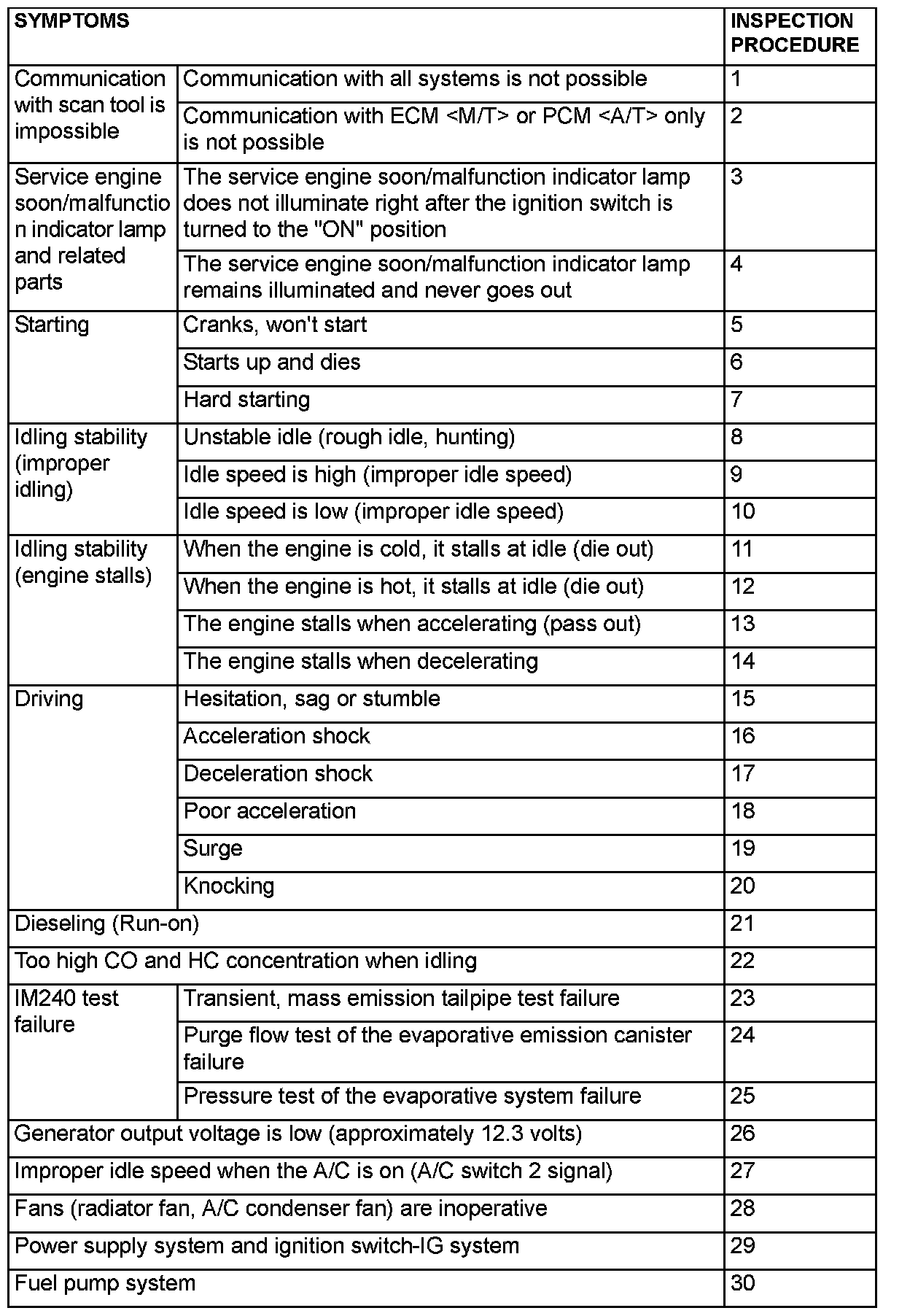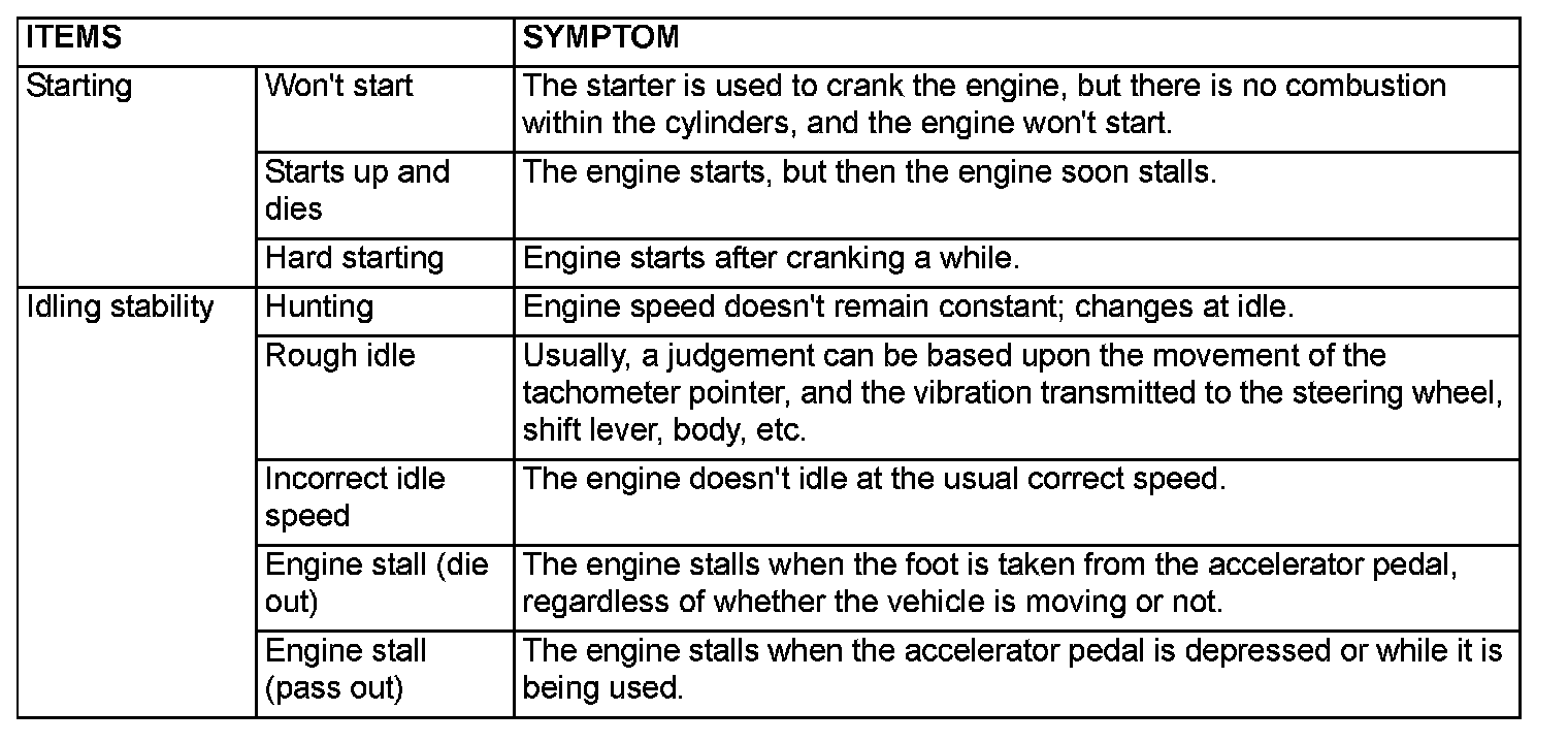 PROBLEM SYMPTOMS TABLE (FOR YOUR INFORMATION)