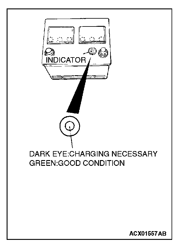 The battery contains a visual test indicator which gives a green signal when an adequate charge level exists, and a dark signal when charging is required.