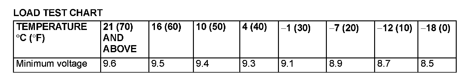 4. Compare the measured value with the minimum voltage (See LOAD TEST CHART).