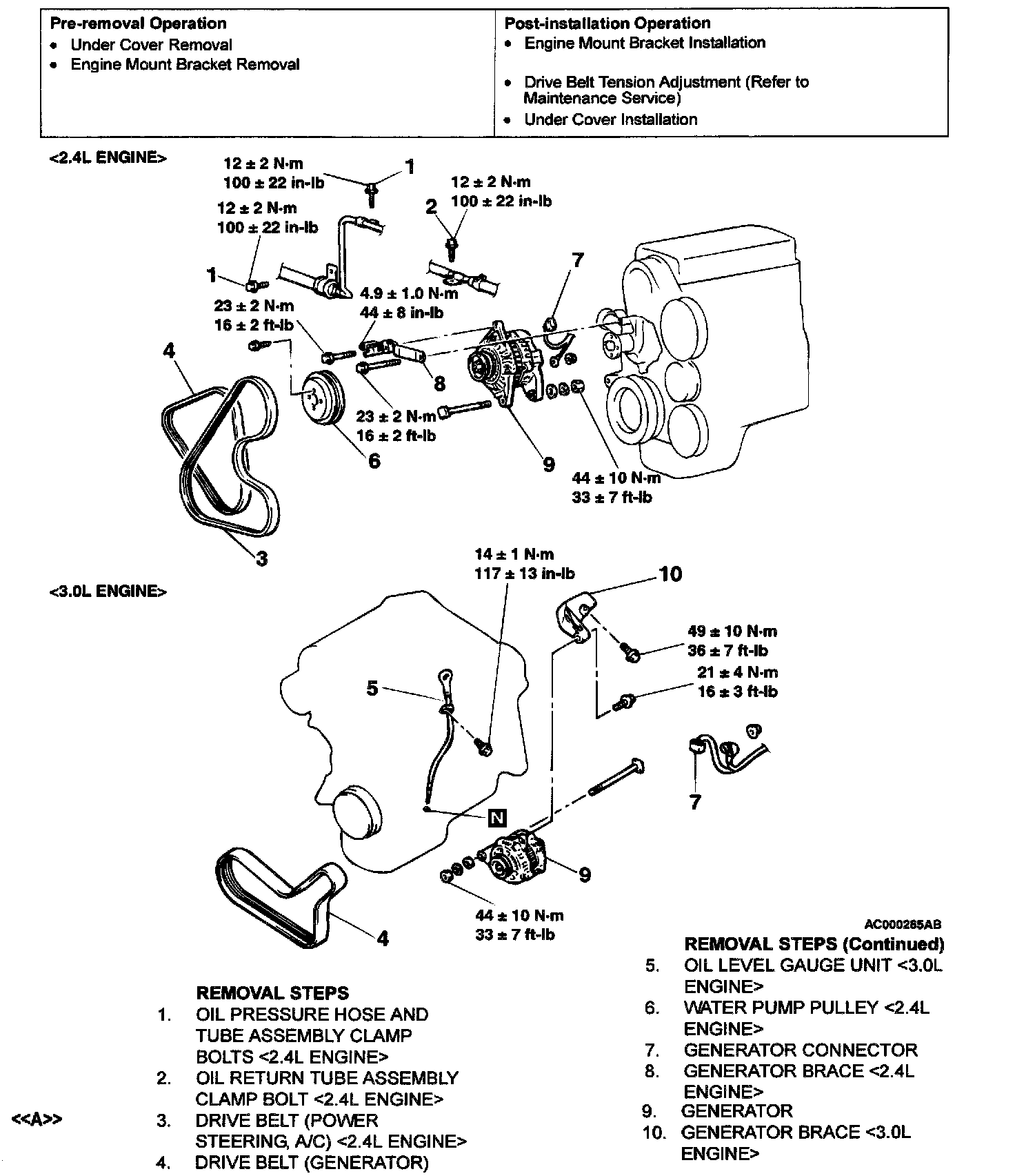 > DRIVE BELT (POWER STEERING, A/C) REMOVAL