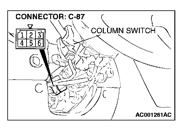 connector C-87 without removing the ignition switch and steering lock cylinder. Then check the continuity.