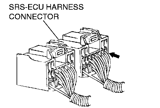 Since the SRS-ECU harness connector is plated to improve conductivity, observe the warning when checking this connector.