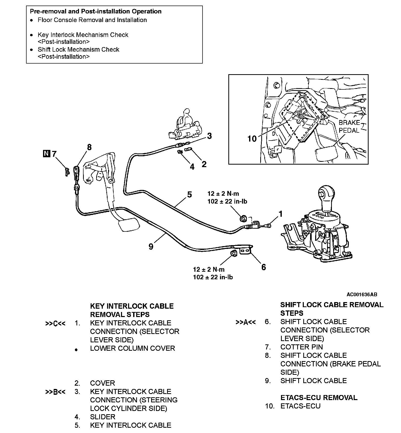 A/T KEY INTERLOCK AND SHIFT LOCK MECHANISMSREMOVAL AND INSTALLATION