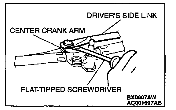 3. Use a flat-tipped screwdriver to disengage the driver's side link from the center crank arm.