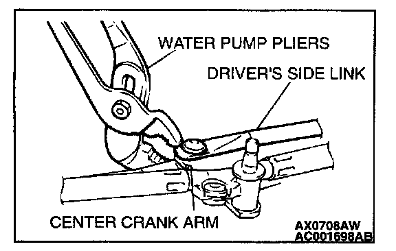 3. Use water pump pliers to engage securely the driver's side link with the center crank arm.