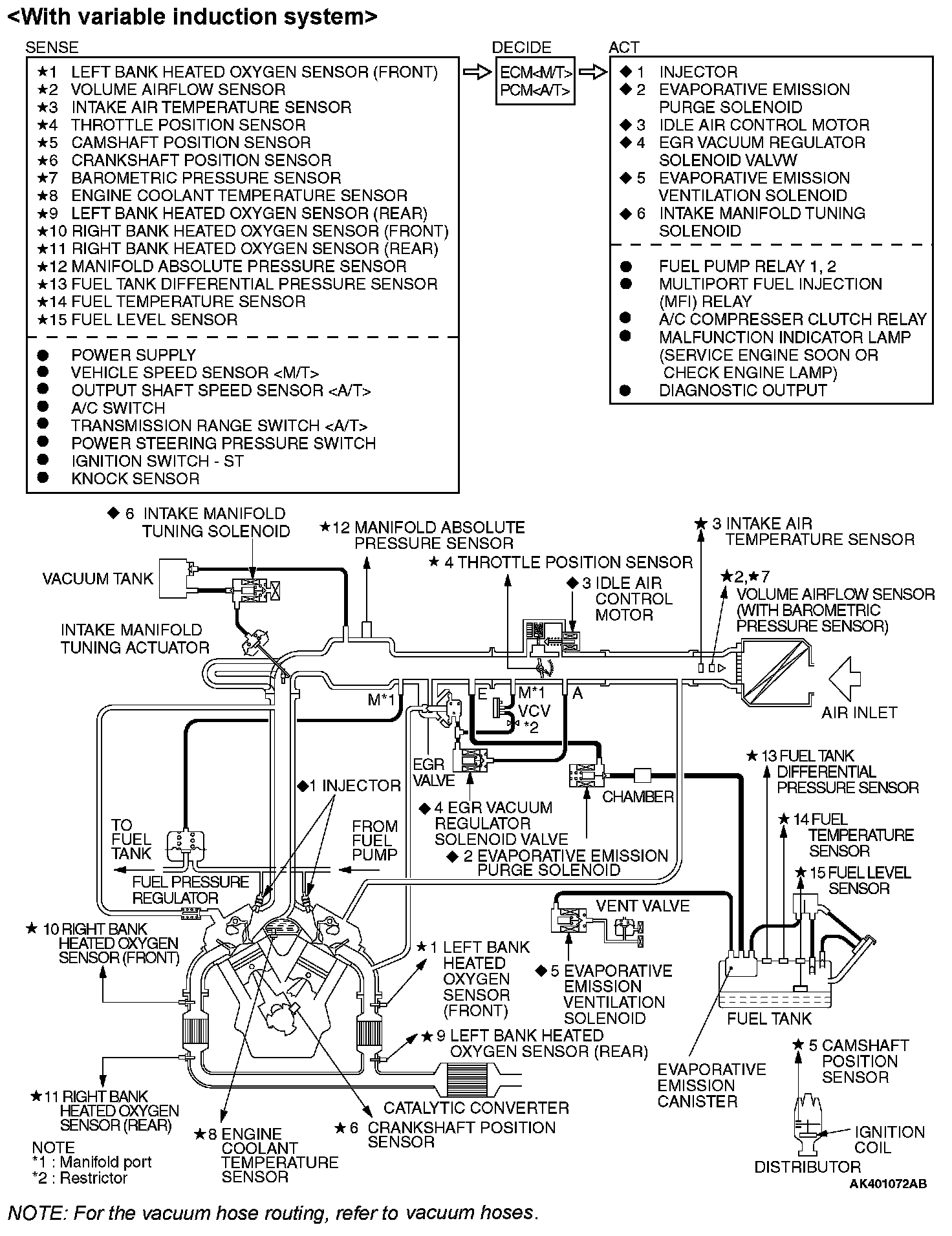 The Multiport Fuel Injection System consists of sensors which detect the engine conditions, the ENGINE CONTROL MODULE (ECM)