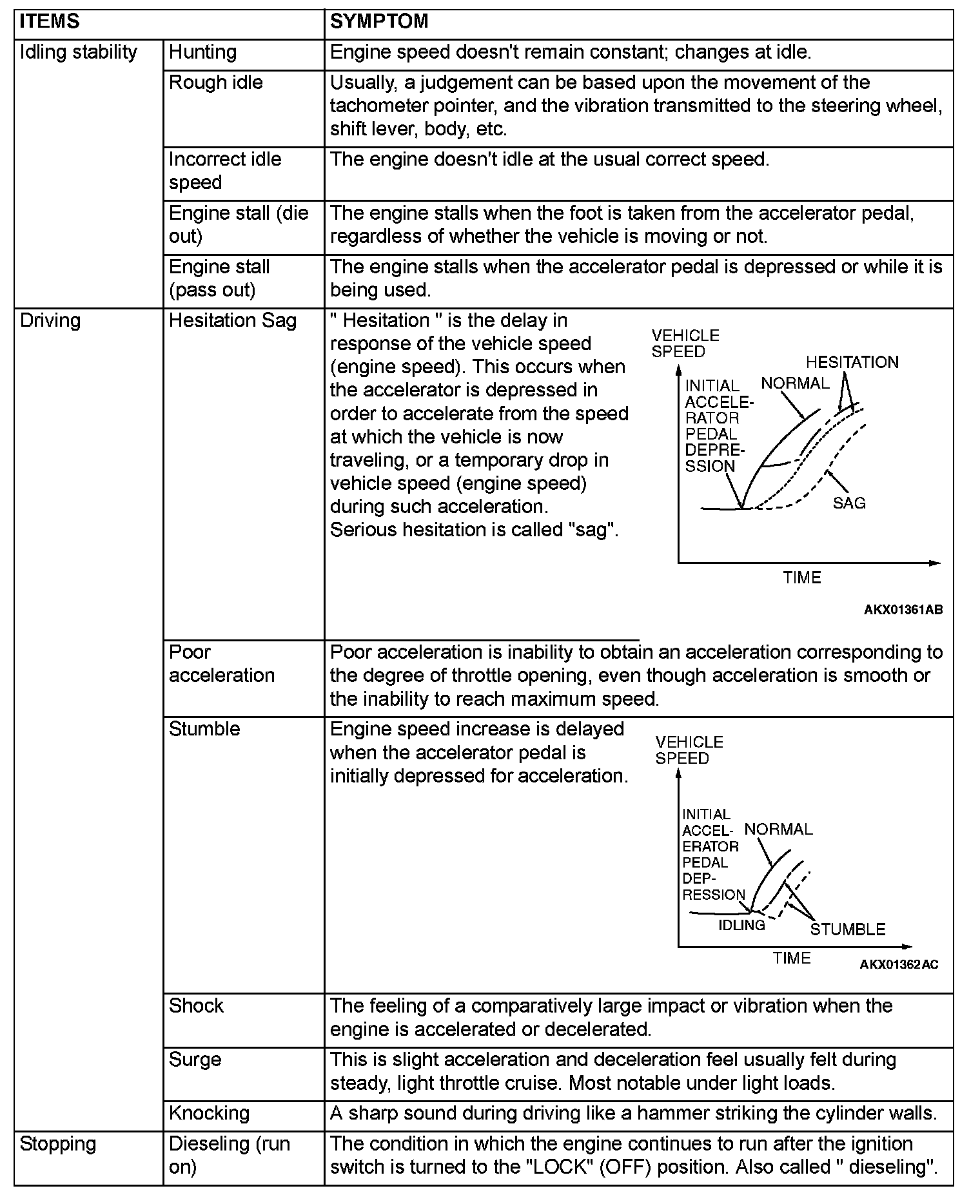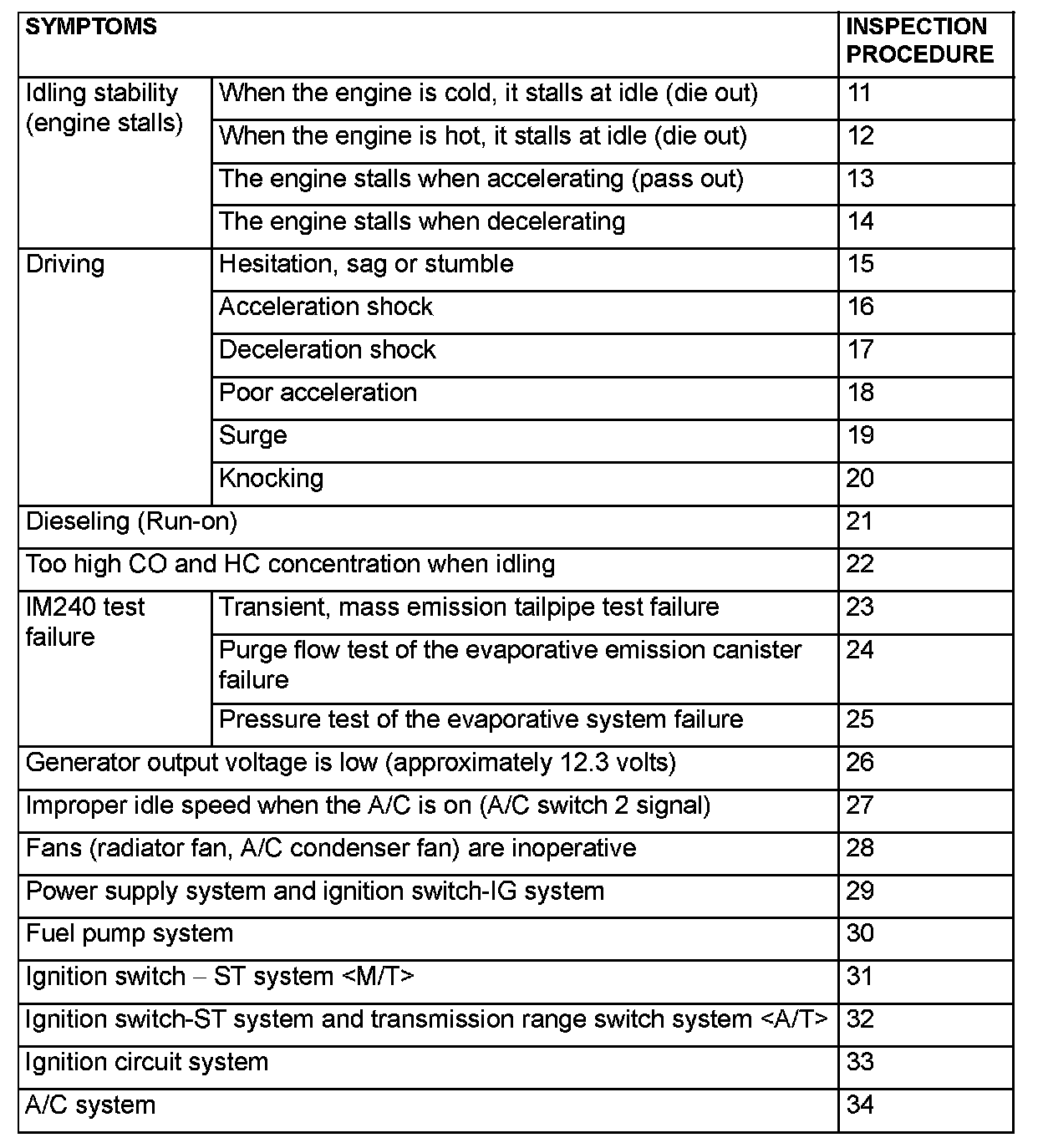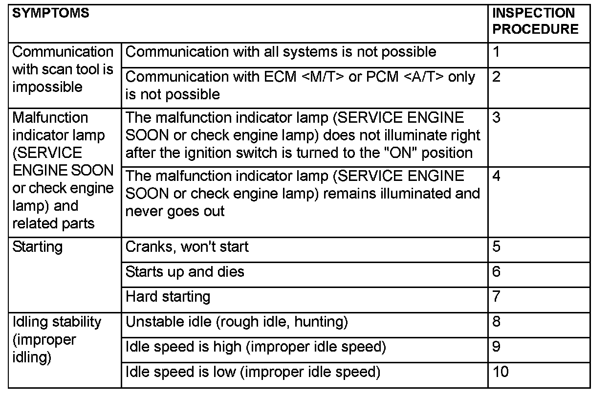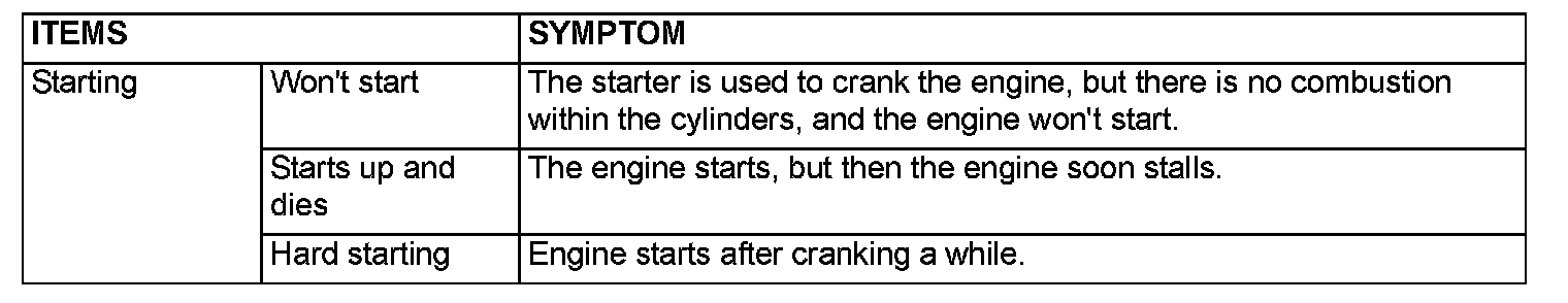 PROBLEM SYMPTOMS TABLE (FOR YOUR INFORMATION)
