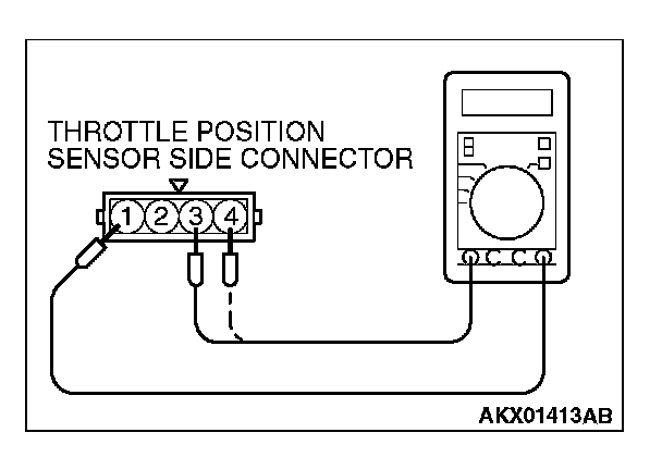 2. Measure the resistance between throttle position sensor side connector terminals No. 1 and No. 4.