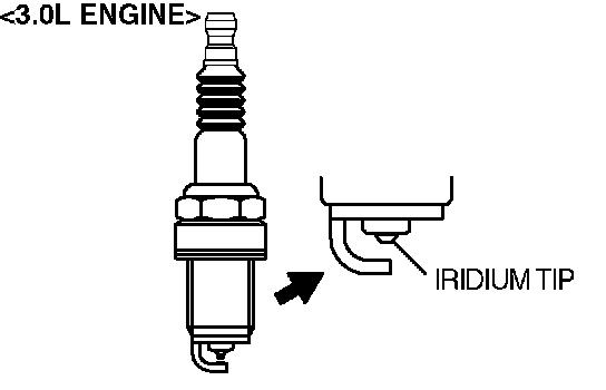 CAUTION: Iridium plugs are used on 3.0L engine. Use care not to damage the iridium tips of the iridium plugs. Do not attempt to adjust the gap on these plugs.