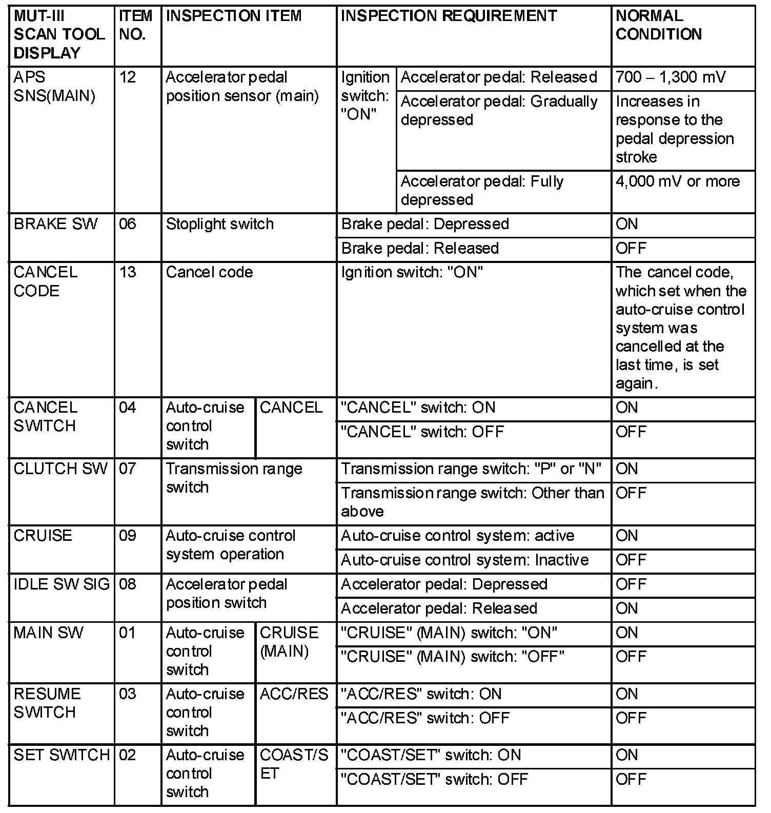 NOTE: *:After the inspection is completed, disconnect the throttle position sensor connector, and then delete the diagnostic trouble code using use of scan tool MB991958.