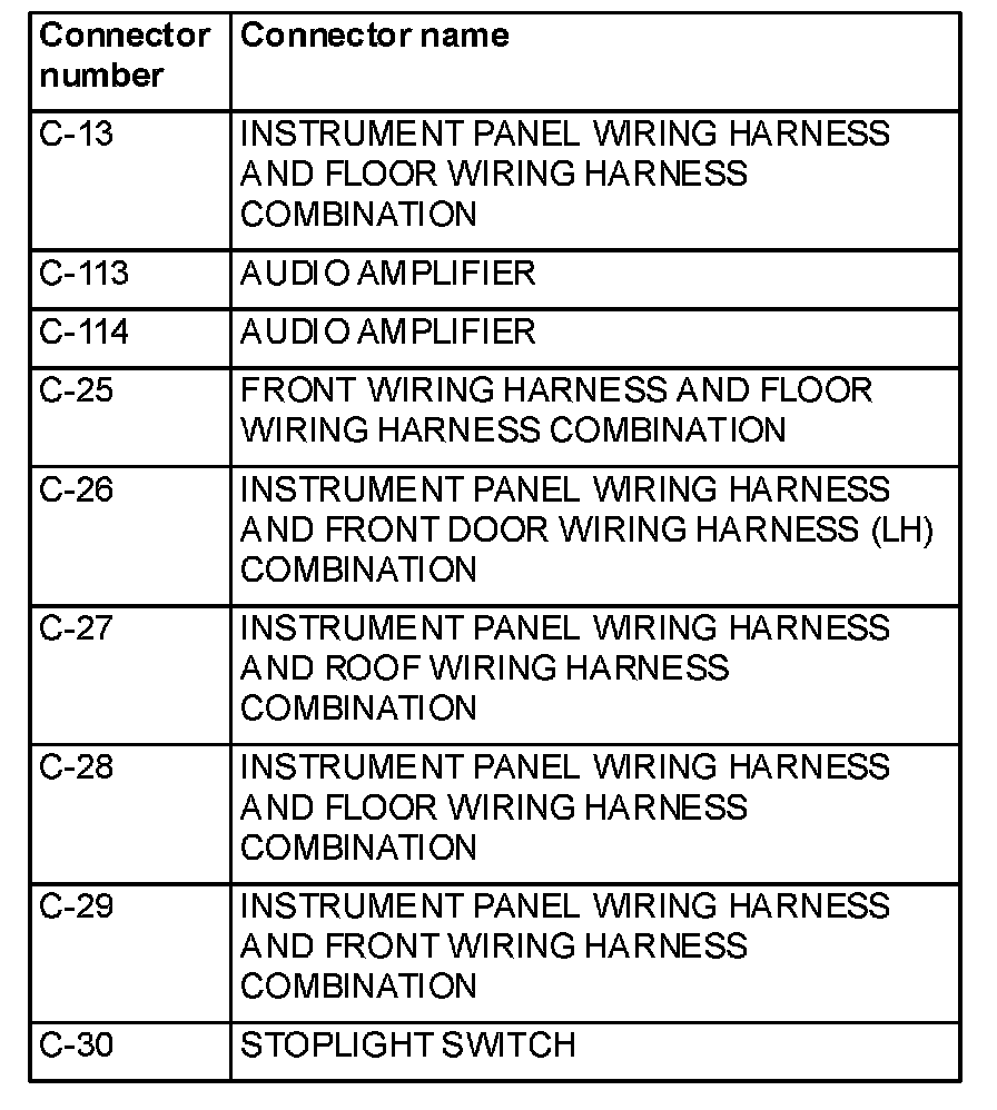 Disconnect the following connectors to gain access to the front deck crossmember.
