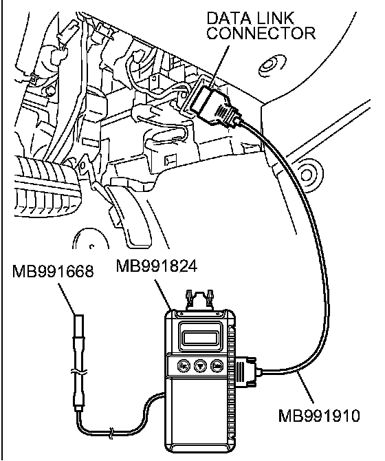 CAUTION: To prevent damage to scan tool MB991958, always turn the ignition switch to the LOCK (OFF) position before connecting or disconnecting scan tool MB991958.