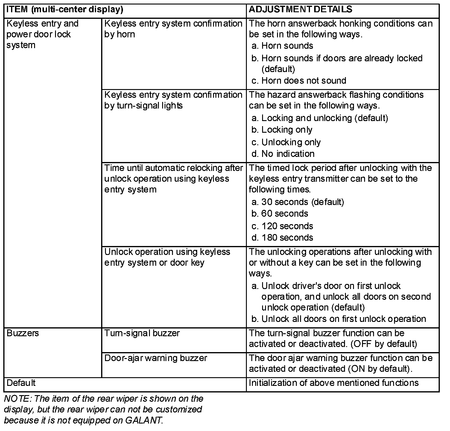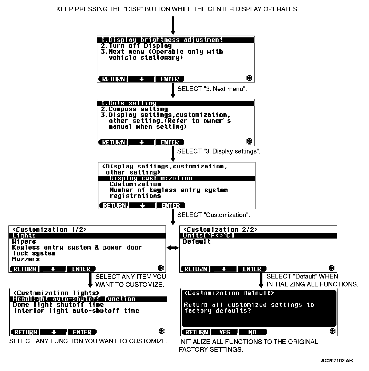 ADJUSTMENT BY OPERATING THE MULTI CENTER DISPLAY
