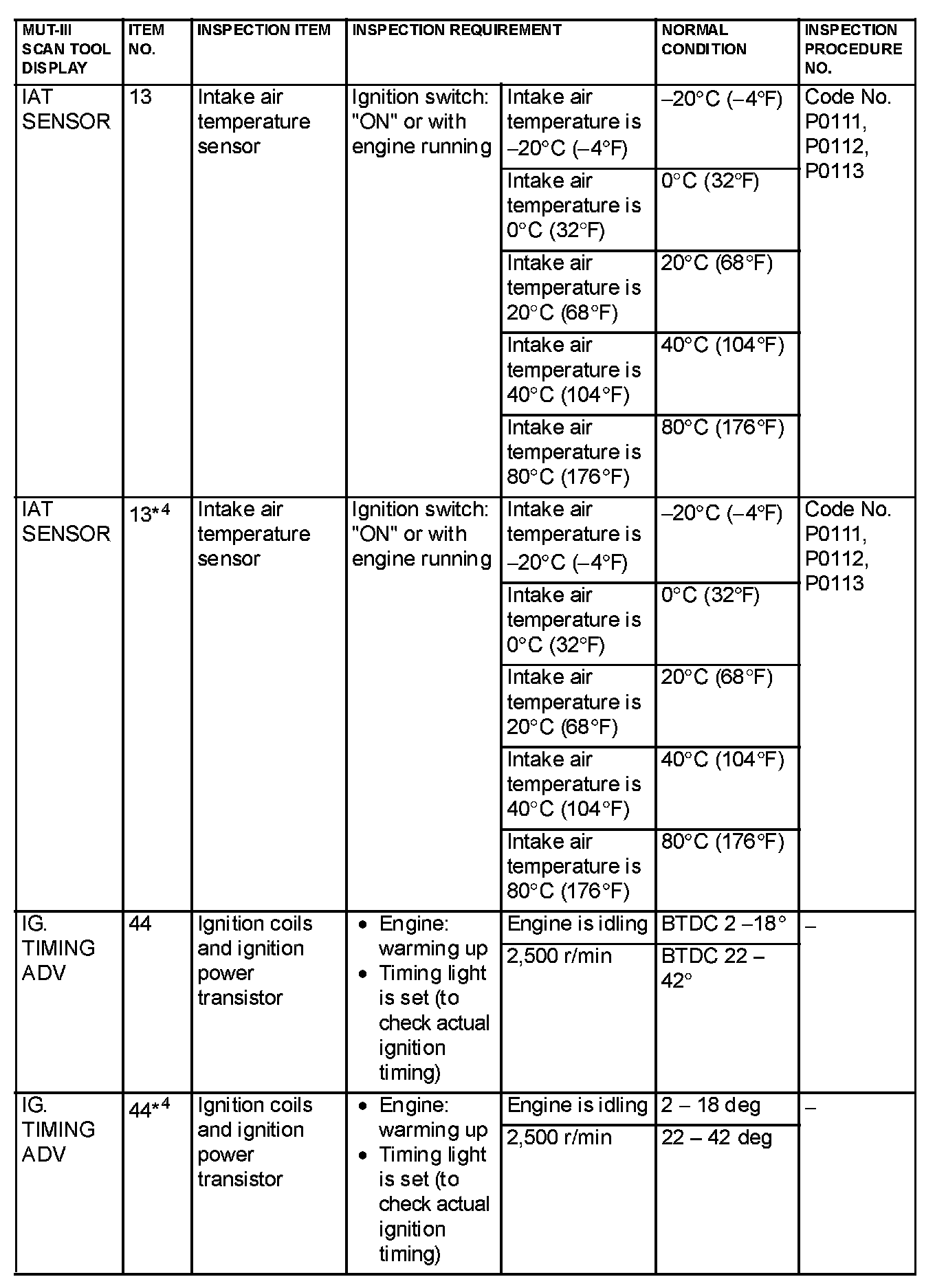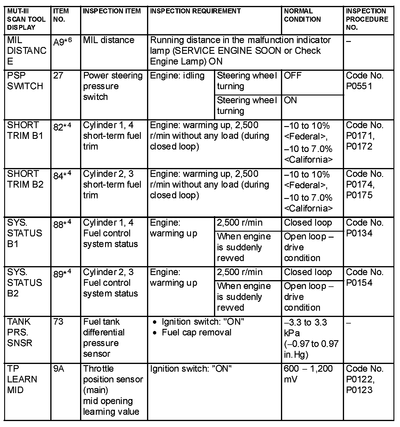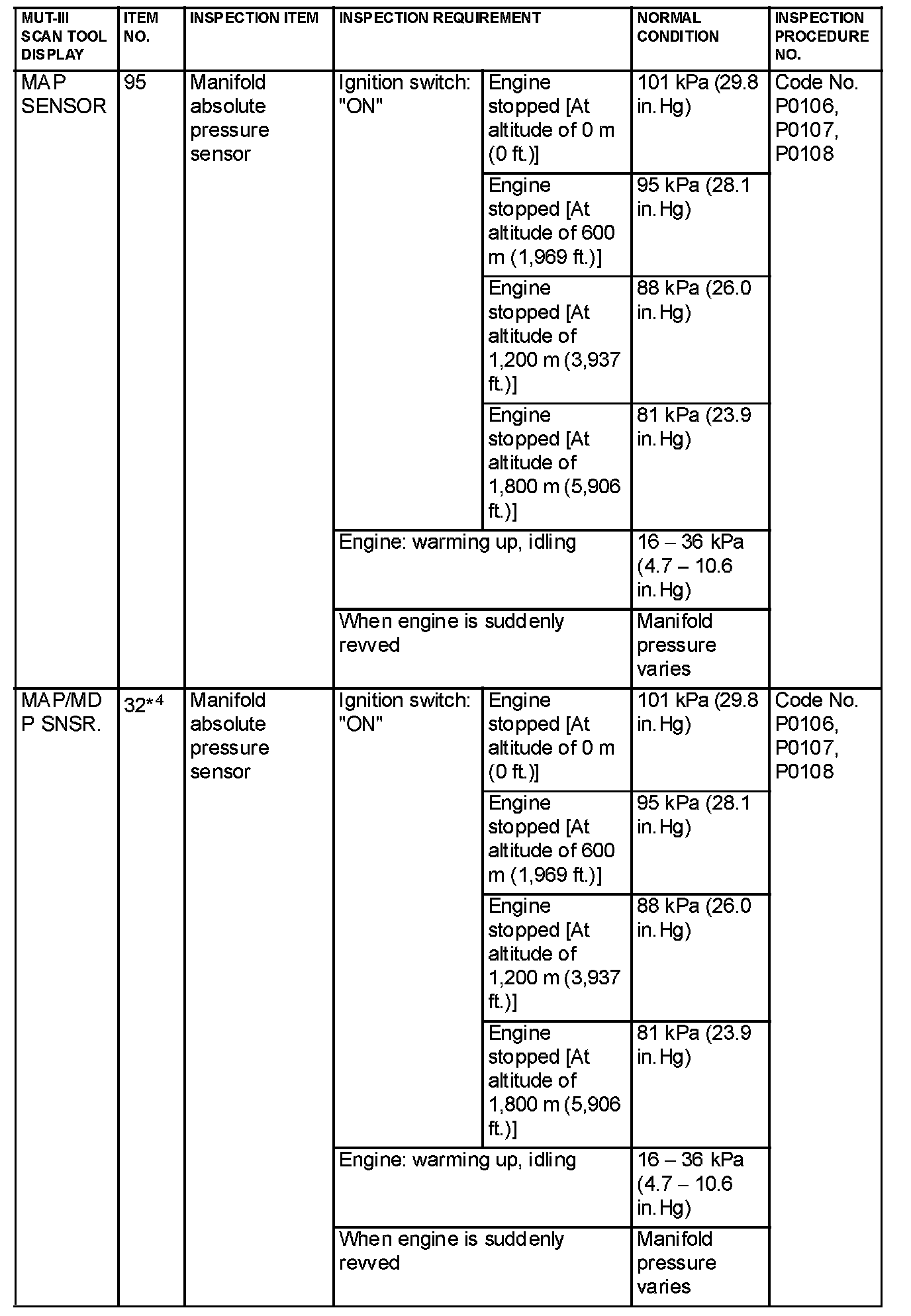NOTE: *1: In a new vehicle [driven approximately 500 km (311 mile) or less], the mass airflow sensor output value is sometimes 10% higher than the standard value.