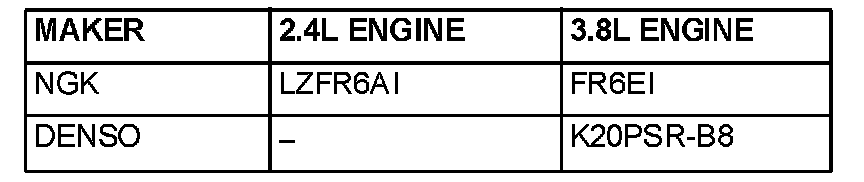 1. Spark plugs must spark properly to assure proper engine performance and reduce exhaust emission level. Therefore, they should be replaced periodically with new ones. Spark plug type