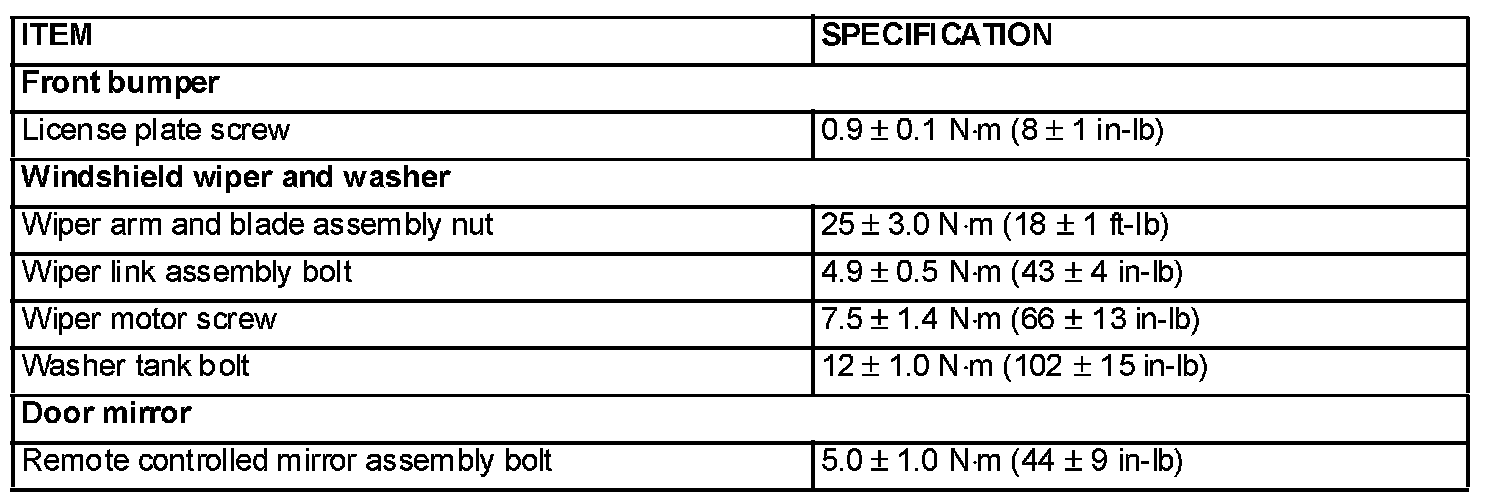 Fastener Tightening Specifications: