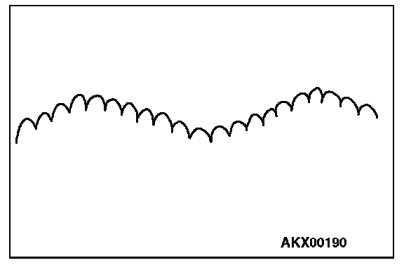 NOTE: The voltage waveform of the generator "B" terminal can undulate as shown. This waveform is produced when the regulator operates according to fluctuations in the generator load (current), and is normal for the generator.