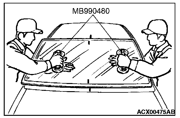 1. When replacing the windshield, temporarily set the windshield against the body, and place a mating mark on the windshield and body.