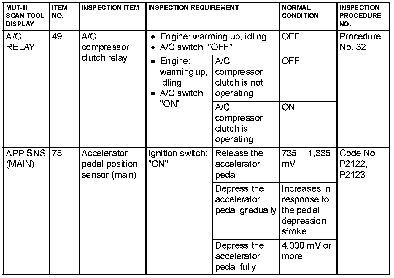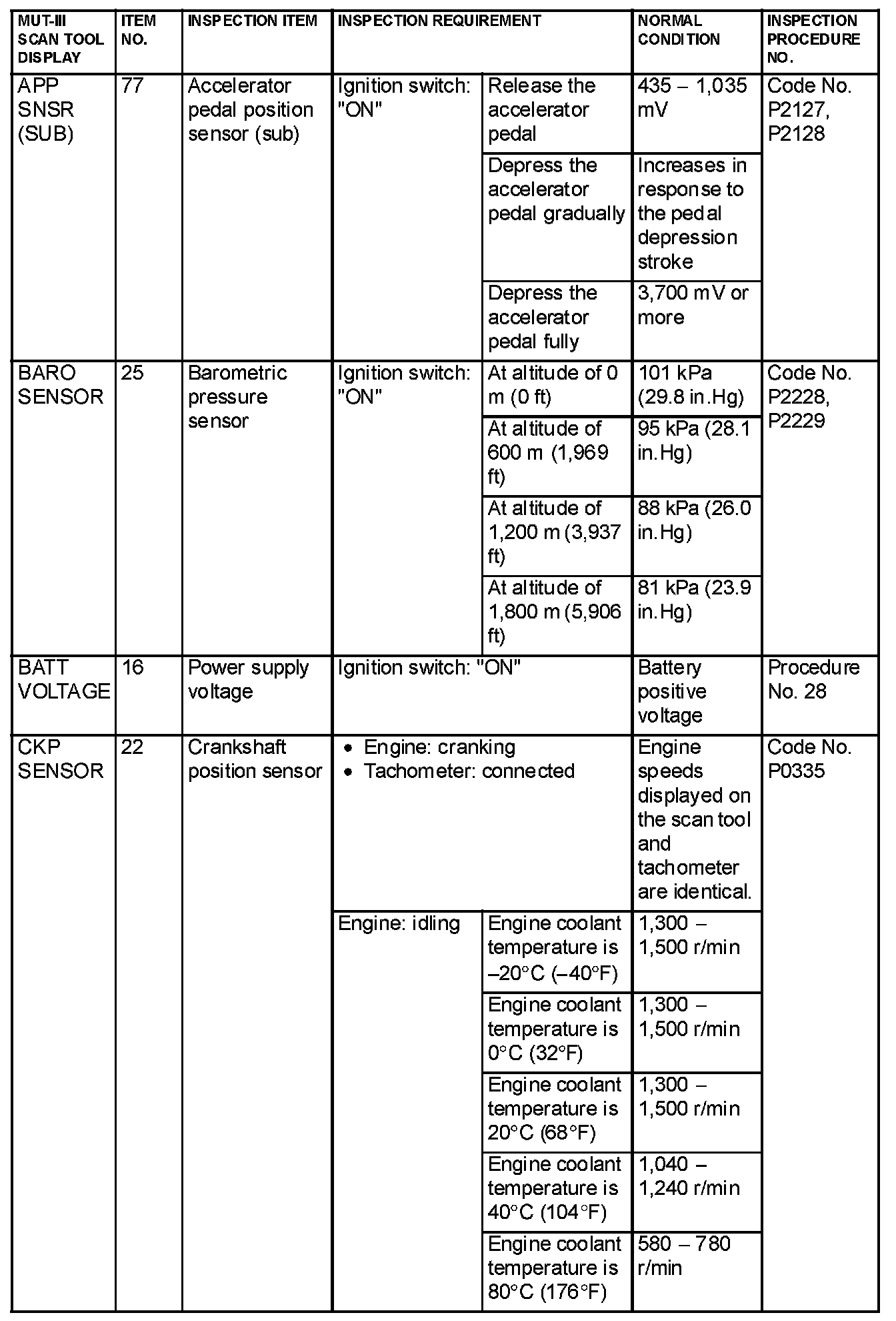 Data List Reference Table & Normal Scan Data Values