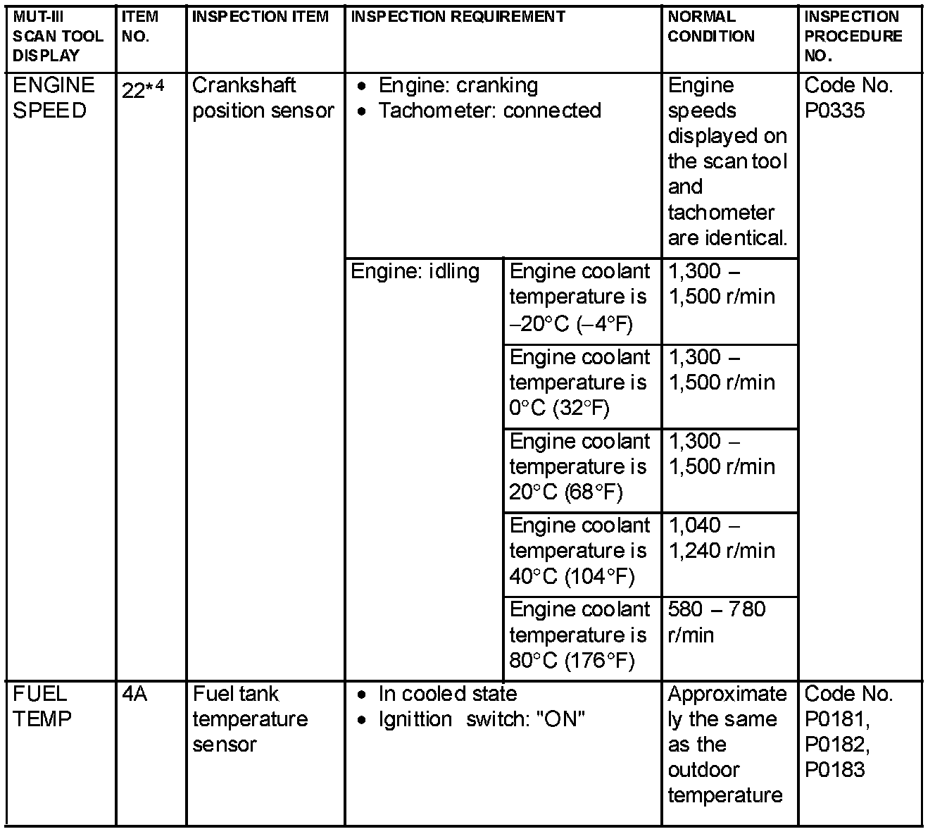NOTE: *2: The injector drive time represents the time when the cranking speed is at 250 r/min or below when the power supply voltage is 11 volts.