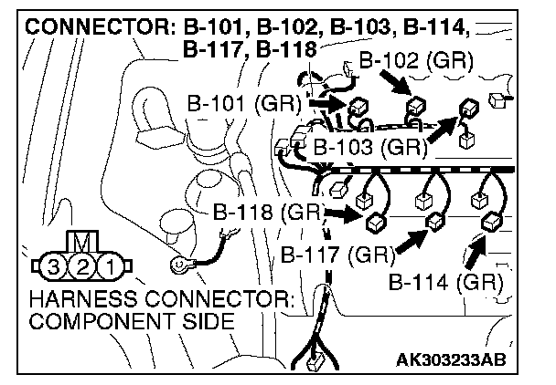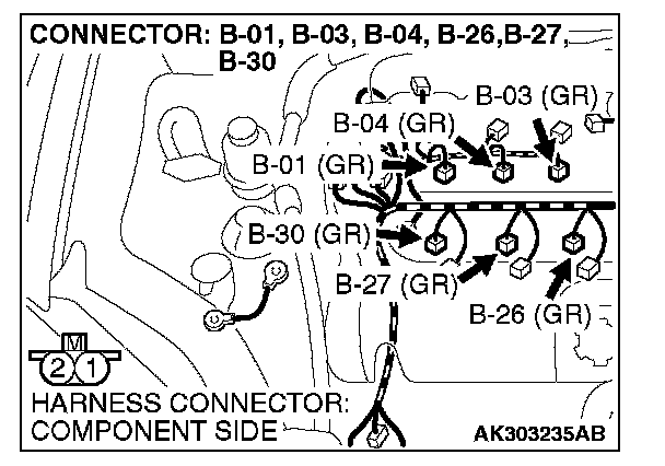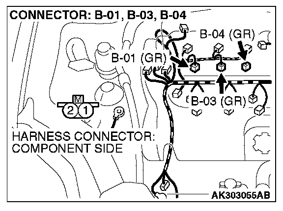 STEP 11. Check harness connector B-03 or B-04 or B-01 at right bank injector for damage.