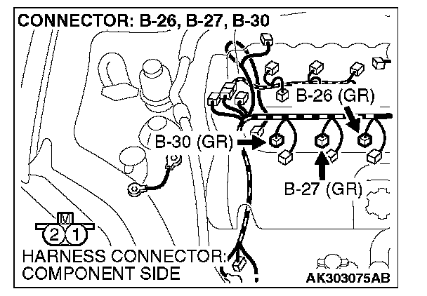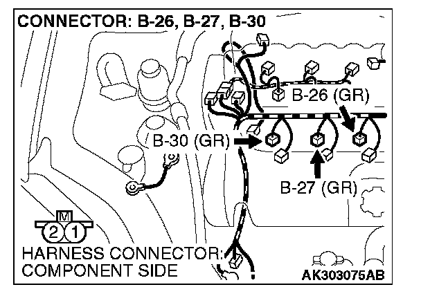 STEP 13. Check harness connector B-27, B-26, B-30 at left bank injector for damage.