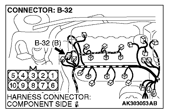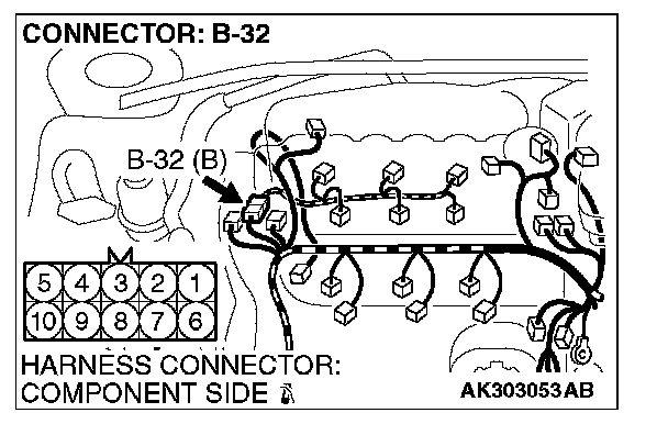 STEP 12. Check harness connector B-32 at intermediate connector for damage.