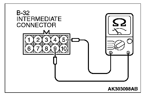 STEP 9. Check the right bank injector resistance at intermediate connector B-32.