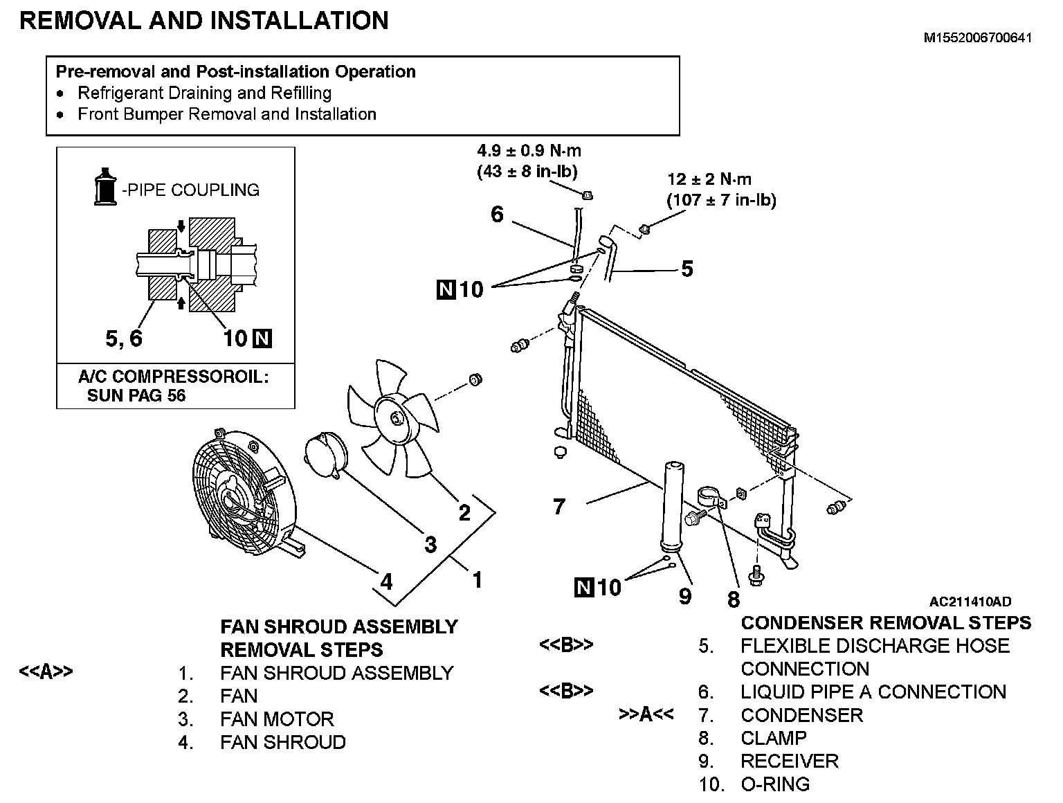 CONDENSER AND CONDENSER FAN MOTORRemoval And Installation: