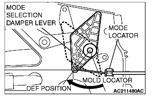 2. Set the heater unit's mode selection damper lever to the DEF position (turn the damper relay to the left until it stops) and install the cable.