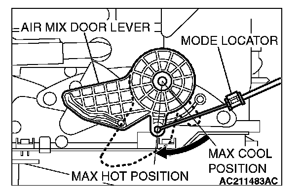2. Set the heater unit's air mix door lever to the MAX HOT position (turn the damper lever as the left illustration) and attach the cable.
