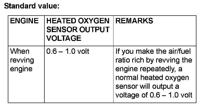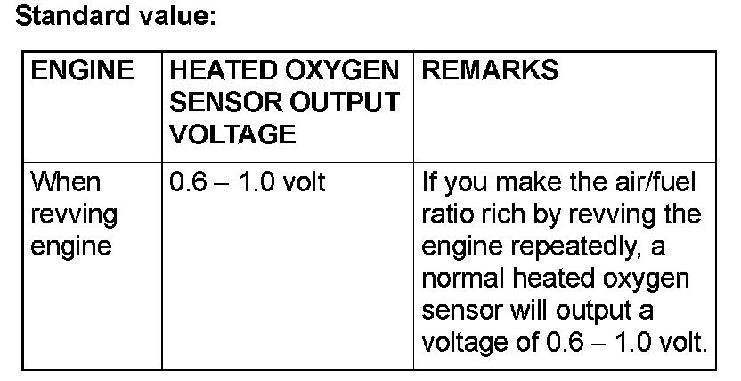 2. While repeatedly revving the engine measure the heated oxygen sensor output voltage.