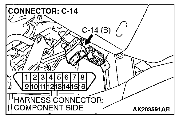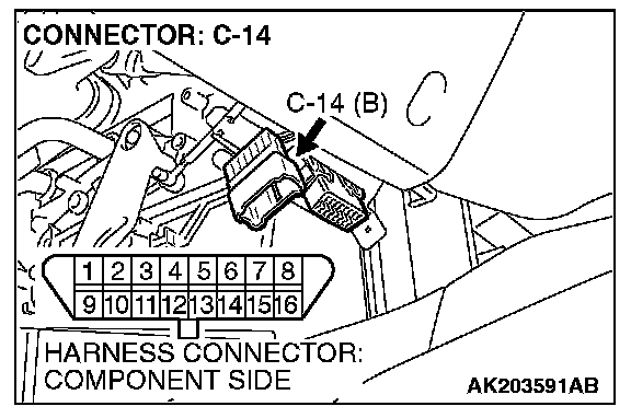 STEP 1. Measure the power supply voltage at data link connector C-14.
