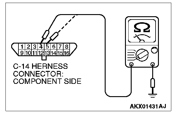 NO: Repair harness wire between data link connector C-14 (terminals No.4 No.5) and ground because of open circuit or harness damage. Then confirm that the malfunction symptom is eliminated.