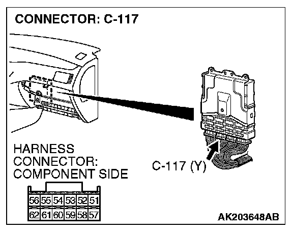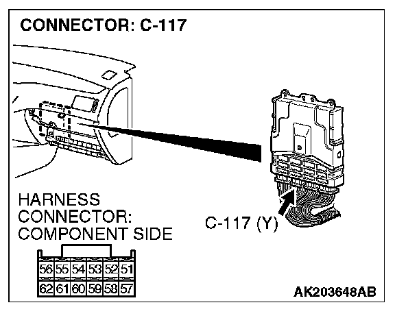 STEP 1. Check connector C-117 at ECM for damage.