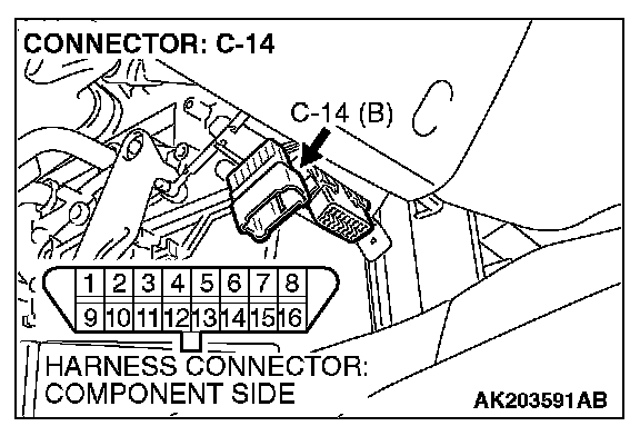 STEP 2. Check for open circuit short circuit to ground and harness damage between data link connector C-14 (terminal No.7) and ECM connector C-117 (terminal No.62).