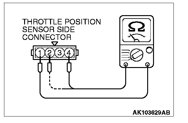 2. Measure resistance between the throttle position sensor side connector terminal No.1 and terminal No.4.