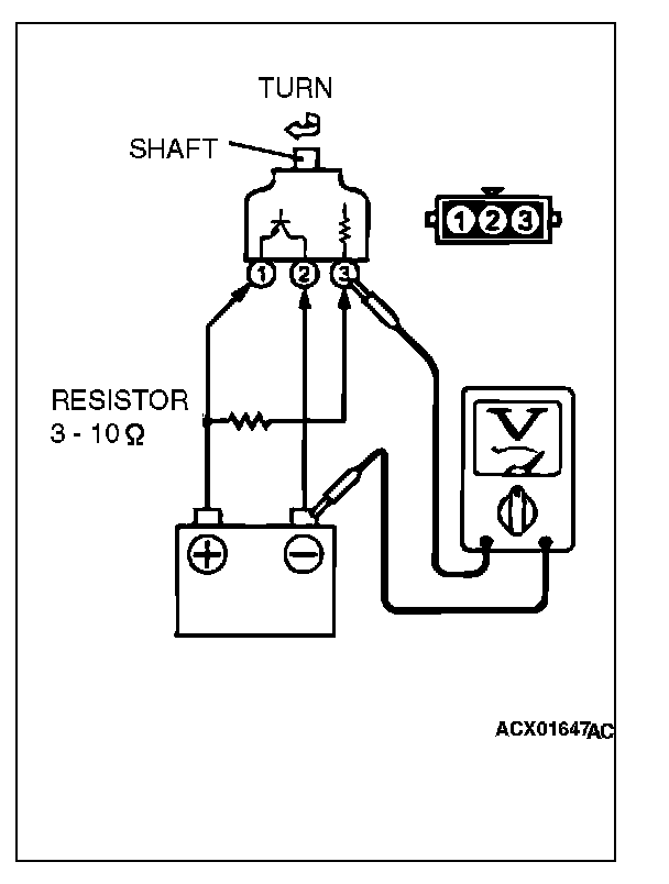 2. Turn the shaft of the vehicle speed sensor and check that there is voltage between terminals 2 - 3. (1 turn = 4 pulses)