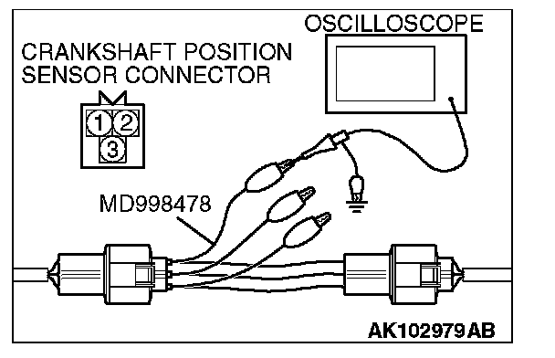 3. Disconnect the crankshaft position sensor connector and connect the test harness special tool (MD998478) in between.