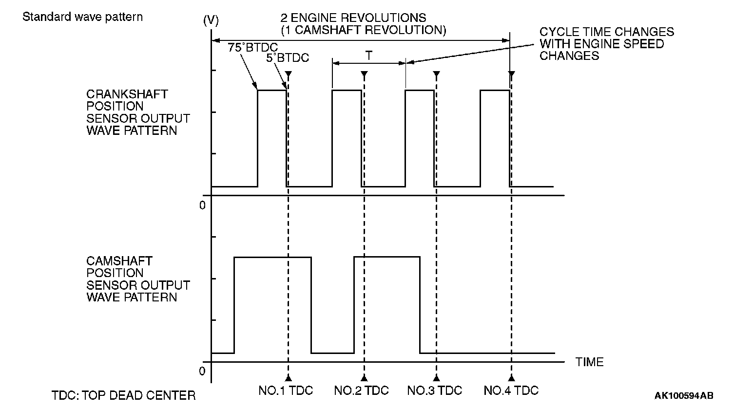 - Rectangular wave pattern is output even when the engine is not started.