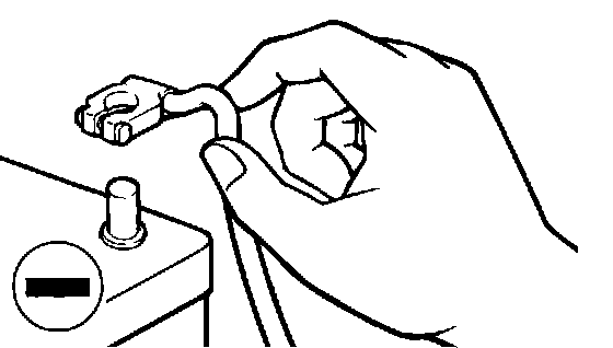^ Before connecting or disconnecting the negative battery cable, be sure to turn the ignition switch to the LOCK (OFF) position and turn off the lights. (If this is not done, there is the possibility of semiconductor parts being damaged.)