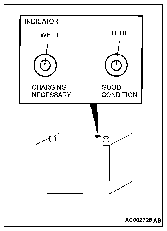 The battery contains a visual test indicator which gives a blue signal when an adequate charge level exists, and a white signal when charging is required.