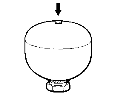 ^ When drilling a hole in the accumulator, be sure to wear safety goggles since drill chips may blow out together with the gas.