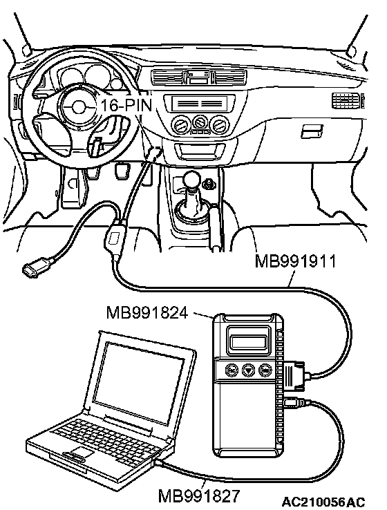 CAUTION: To prevent damage to scan tool MB991958, always turn the ignition switch to the LOCK (OFF) position before connecting or disconnecting scan tool MB991958.